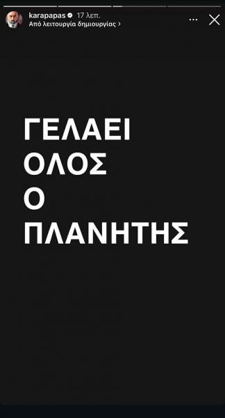 Κάτι που έφερε αντίδραση στις τάξεις του Ολυμπιακού καθώς ο εκ των αντιπροέδρων των «ερυθρολεύκων», Κώστας Καραπαπάς αντέδρασε μέσω story στο Instagram γράφοντας: «Γελάει όλος ο πλανήτης» (ΦΩΤΟ 2).