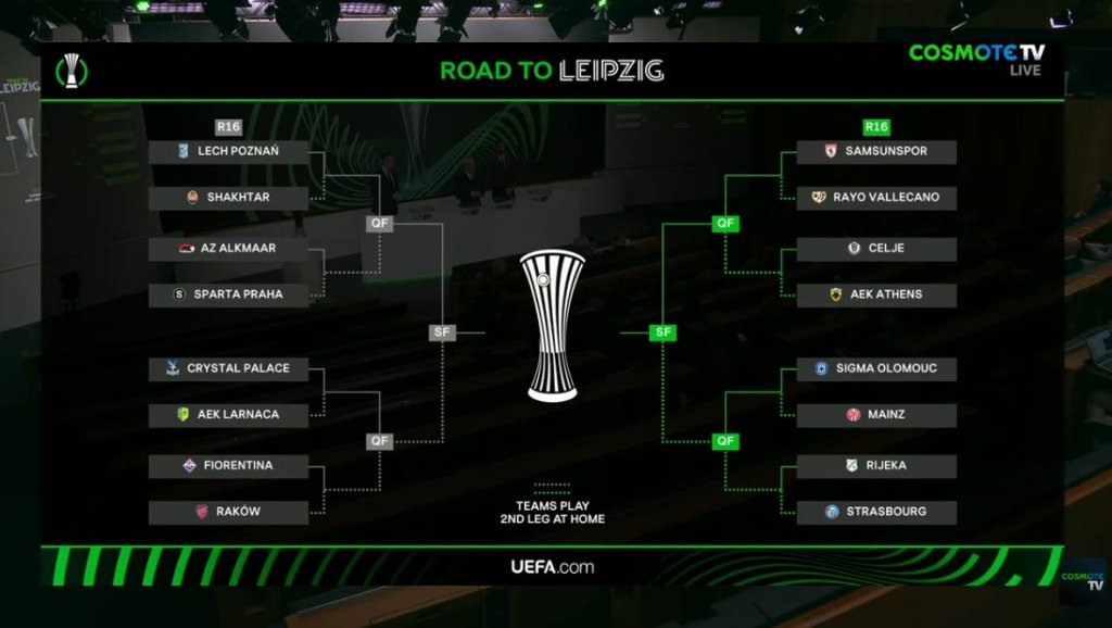 Αναφορικά με τα προημιτελικά και αν φτάσει εκεί η ομάδα του Νίκολιτς τότε θα παίξει με τον νικητή του Σάμσουνσπορ - Ράγιο Βαγιεκάνο με πρώτο ματς εκτός έδρας στις 9 Απριλίου και ρεβάνς στην Αθήνα μία εβδομάδα μετά. Η Ένωση αν φτάσει και στους «4» (30 Απριλίου και 7 Μαΐου) θα παίξει με μία εκ των Σίγμα Όλομουτς, Μάιντζ, Ριέκα, Στρασμπούρ.